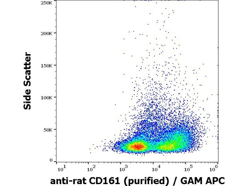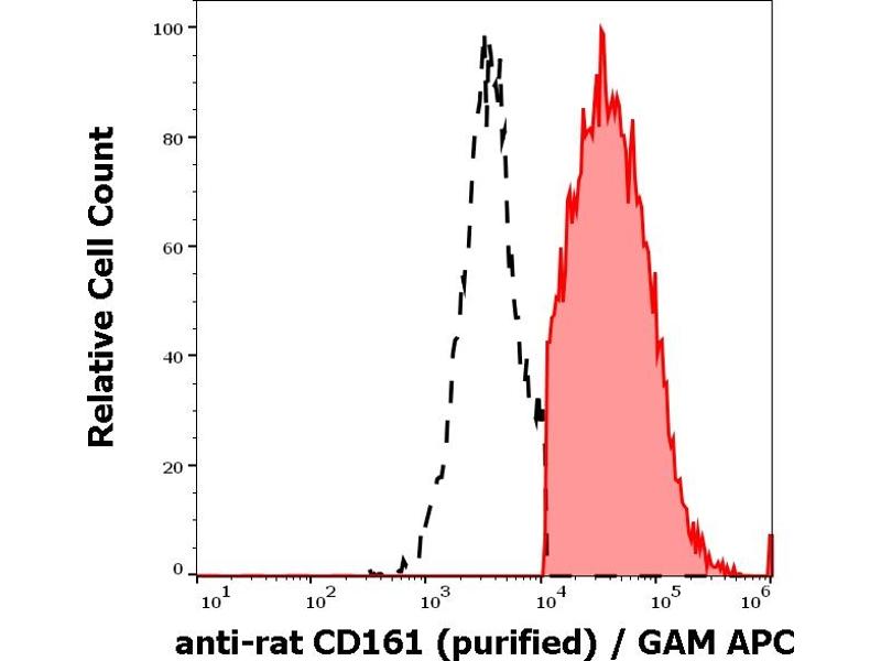 The mouse monoclonal antibody 10/78 recognizes CD161, an approximately 30 kDa type II transmembrane C-type lectin receptor, expressed on the plasma membrane of NK cells, dendritic cells, activated monocytes and a subset of T cells as a disulphide-linked homodimer. A common extracellular epitope on rat CD161a and b isoforms is detected.