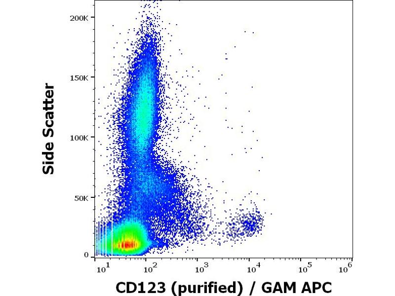 The mouse monoclonal antibody 6H6 recognizes an extracellular epitope of CD123 (interleukin 3 receptor alpha), a 60-70 kDa transmembrane protein expressed by myeloid precursors, megakaryocytes, macrophages, dendritic cells, mast cells, basophils, and some B cells. This antibody does not inhibit IL-3 binding to its receptor.