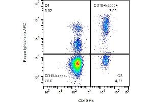 The APC-conjugated Mouse Monoclonal anti-kappa Light Chain antibody (Clone TB28-2) (ABIN1302657) specifically detects kappa Light Chain in FACS.