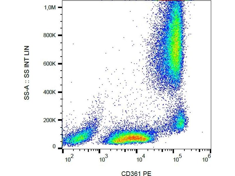 The mouse monoclonal antibody MEM-216 recognizes an extracellular epitope of CD361 / EVI2B, almost uncharacterized type I transmembrane protein with broad leukocyte expression, mostly in myeloid and B cells.