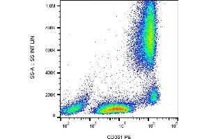 Flow cytometry: The reagent is designed for analysis of human blood cells using 20 μL reagent / 100 μL of whole blood or 106 cells in a suspension. The content of a vial (2 ml) is sufficient for 100 tests.