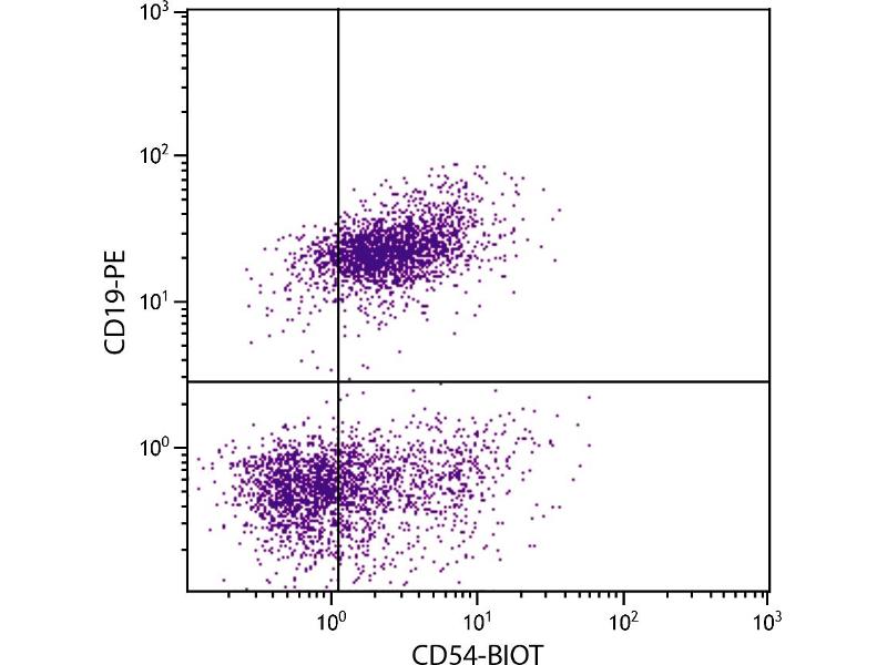 - CD54, a member of the immunoglobulin superfamily of cell surface receptors and also known as Intercellular Adhesion Molecule-1 (ICAM-1), is a type I transmembrane glycoprotein that mediates important cell/cell interactions. CD54 is expressed on endothelial cells, dendritic cells, keratinocytes and lymphocytes. Its expression is upregulated by inflammatory mediators such as IFN-γ, IL-1, TNF-α, lipopolysaccharide and phorbol esters. Endothelial CD54 contributes to the extravasation of leukocytes from blood vessels, particularly in areas of inflammation. CD54 on antigen-presenting cells contributes to antigen-specific T-cell activation, presumably by enhancing interactions between T cell and antigen-presenting cells. These adhesion reactions are mediated via the binding of CD54 to its major ligands, LFA-1 and Mac-1.