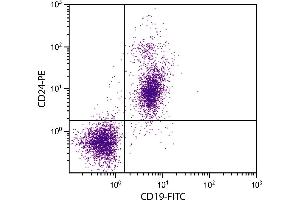 CD24 is expressed in B cells until their terminal differentiation into plasma cells. It has been used widely as a marker to fractionate different B-lineage differentiation stages. CD24 has been found on a variety of other hematopoietic and neural cell types, and is now classified as a costimulatory molecule. The CD24/HSA molecule is composed mostly of carbohydrate, with a protein core of only 31-35 amino acids in the human and 27 AA in the mouse. The molecular mass is variable, ranging from 38-70 kDa. CD24 is now included in the large group of phosphatidylinositol-anchored membrane proteins. Studies with purified CD24 applied to latex beads have demonstrated a self-binding property, suggesting that the molecule is capable of promoting homotypic aggregation, binding and cell adhesion. This is supported by earlier observations of the blockade of B cell lymphoblast aggregation with anti-CD24 monoclonal antibody. Recent studies of murine CD24 have assigned a role for CD24/HSA as a ligand for P-selectin, a calcium-dependent lectin.