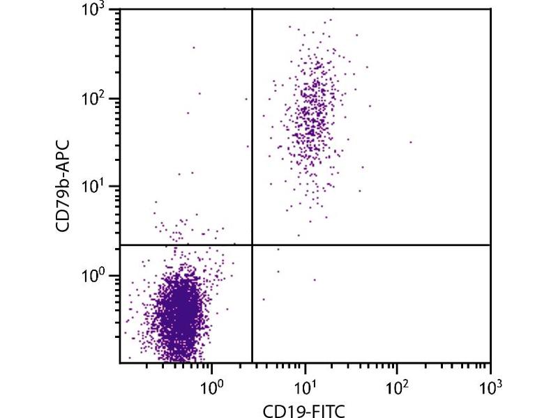 The FITC-conjugated Mouse Monoclonal anti-CD79b antibody (Clone CB3-1) (ABIN135810) specifically detects CD79b in FACS.