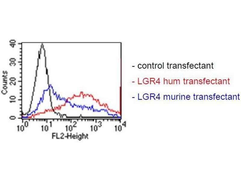 - LGR4 (Leucine-rich repeat- containing G protein-coupled receptor 4, GPR48) belongs to the superfamily of G protein-coupled receptors (GPCRs). It is a 951 amino acid multi-pass membrane protein and has multiple N-terminal leucine-rich repeats, which are important for interaction with the glycoprotein ligands, and 7 transmembrane domains. LGR4 is highly expressed in the adult human pancreas but also with moderate levels of expression in placenta, kidney, brain and heart. LGR4 functions as an orphan receptor that may be involved in physiologic activities throughout the cell. It is overexpressed in various cancer types and is thought to enhance carcinoma invasiveness and metastasis, suggesting an important role in tumor progression.