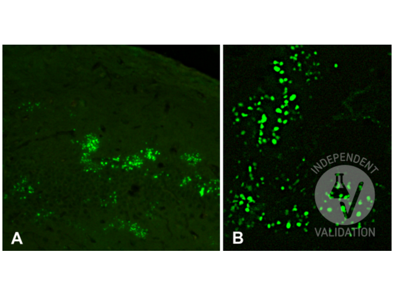 - Incubate sections with anti-rabbit secondary antibody Alexa Fluor 488, 1:500, in 0.1M PBS (Thermo Fisher Scientific, A11034, lot # 2380031) for 1 h at RT.