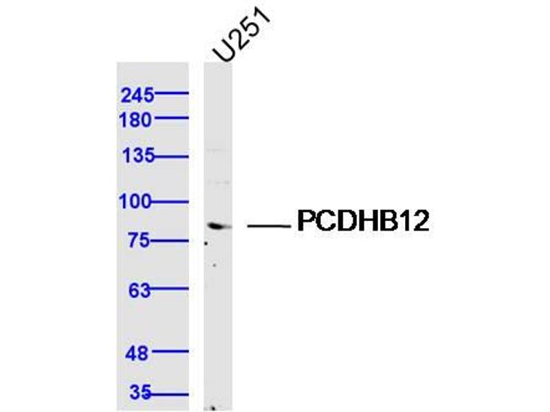 Background: Protocadherins are a large family of cadherin-like cell adhesion proteins that are involved in the establishment and maintenance of neuronal connections in the brain. There are three protocadherin gene clusters, designated alpha, beta and gamma, all of which contain multiple tandemly arranged genes. PCDHB12 (Protocadherin beta 12) is a 795 amino acid protein that is one of 16 proteins in the protocadherin beta cluster. Unlike the alpha and gamma gene clusters whose genes are spliced to downstream constant region exons during transcription, members of the beta cluster (such as PCDHB12) do not use constant-region exons to produce mRNAs. As a result, each protocadherin beta gene encodes the transmembrane, extracellular and short cytoplasmic domains of the protein. Localized to the cell membrane, PCDHB12 is a single-pass type I membrane protein that contains six cadherin domains. PCDHB12 may participate in the establishment and maintenance of specific neuronal connections in the brain.