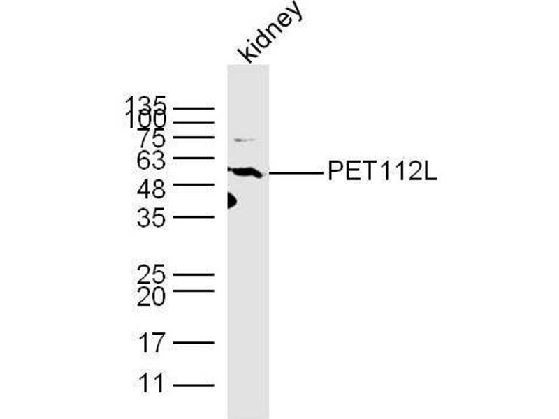 Background: PET112L is the human homolog of the S. cerevisiae COX assembly protein pet112, a protein that is believed to play an important role in the translation of mitochondrial genes. PET112L, also known as HSPC199 or Glu-ADT subunit B (glutamyl-tRNA(Gln) amidotransferase subunit B), is a 557 amino acid protein belonging to the gatB/gatE family of proteins (GatB subfamily) and is believed to play a role in energy metabolism. Localizing to mitochondria, PET112L is expressed in tissues such as heart and muscle, which exhibit high rates of oxidative phosphorylation. The gene encoding PET112L is overexpressed in recurrent ependymoma.