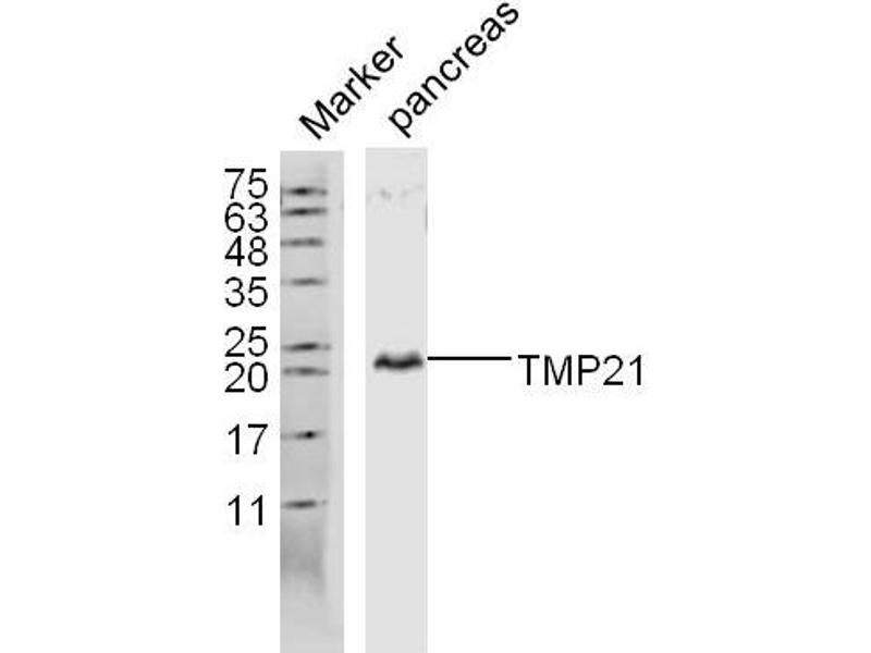 Background: MP21 is a member of the EMP24/GP25L/p24 cargo family of proteins that regulates vesicular trafficking in the early secretory pathway. TMP21 is a ubiquitously expressed single-pass type I membrane protein localizing to the Golgi cisternae and the plasma membrane. It contains one GOLD (Golgi dynamics) domain and participates in protein transport and quality control between the endoplasmic reticulum (ER) and the Golgi complex. In addition, TMP21 is a component of the heteromeric secretase complex (or Presenilin complex) and functions to regulate the ?secretase activity. Two isoforms, namely TMP21-I and TMP21-II, exist for this protein.
