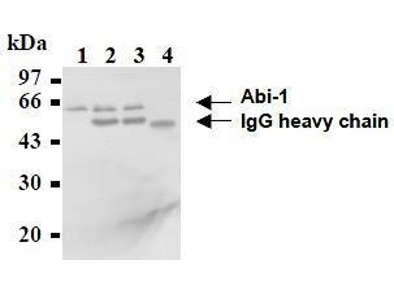 Abl interactor (Abi) proteins are c-Abl-binding proteins that bind to both the Src homology 3 (SH3) domain and the C-terminal proline-rich regions of Abl kinase through dual SH3-PXXP interactions. Two highly related genes, abi-1 and abi-2, were cloned. In addition to the interaction with Abl kinase, Abi proteins also interact with other signaling molecules. Recently, it has been reported that Abi-1 dramatically promoted c-Abl-mediated tyrosine (Tyr296) phosphorylation of Mena [mammalian homologue of Drosophila Enabled (Ena)] by interacting with both proteins.Synonyms: Abelson interactor 1, Abi-1, Abl interactor 1, Abl-binding protein 4, AblBP4, Eps8 SH3 domain-binding protein, Nap1-binding protein, Spectrin SH3 domain-binding protein 1, Spectrin binding protein, e3B1