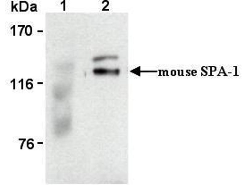 SPA-1 , signal-induced proliferation associated gene 1, encodes a 130 kDa protein (p130 SPA-1 ) with a domain related to Rap1 GTPase activating protein (Rap1GAP) at the N-terminus and to PDZ protein interaction domain followed by a leucine zipper motif at the C-terminus. It exhibits a specific GAP activity for Ras-related regulatory proteins Rap1 and Rap2, but not for other small GTPases. p130 SPA-1 was mostly localized at both the plasma membrane and the perinuclear membranous region co-localizing with Rap1 and Rap2. Expression of SPA-1 and rap1GAP genes tended to be segregate in various tissues, lymphoid and hematopoietic tissues expressing abundant SPA-1 transcript without rap1GAP , while those such as brain, kidney and pancreas exhibiting rap1GAP mRNA with little SPA-1 .Synonyms: GTPase-activating protein Spa-1, Signal-induced proliferation-associated protein 1, Sipa-1, Spa-1, p130 SPA-1