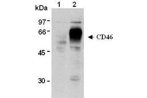 - CD46, also known as membrane cofactor protein (MCP), was first described as a membrane complement regulator that fu nctions as a cofactor with factor I to cleave complement factors C3b and C4b and thereby protect the cell from co mplement attack. In humans, CD46 is expressed on all nuc leated cells. In the rodent animals, its expression is limited only in testis, indicating that the major function of CD46 among different species lies in fertilization. CD46 and other membrane complement regulatory proteins (CD55 and CD59) are frequently overexpressed on cancer cells, possibly as a mechanism for cancer cells to overcome lysis by complement. Several pathogens, including viruses and bacteria (measles virus, human herpesvirus 6, human group B and D adenoviruses, Streptococcus pyogenes , and pathogenic Neisseria species) have been reported to use CD46 for invasion. Recent evidence also indicates that CD 46 signaling events play an important role in linking innate and acquired immune function.Synonyms: MIC10, Membrane cofactor protein, TLX, Trophoblast leukocyte common antigen