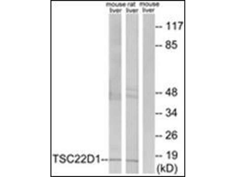 The Rabbit Polyclonal anti-TSC22D1 antibody is suitable to detect TSC22D1 in samples from Human, Rat and Mouse. It has been validated for WB, IF, IHC (p) and EIA.