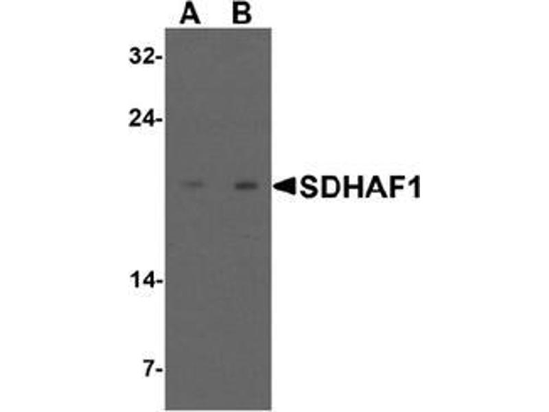 SDHAF1 (Succinate dehydrogenase complex assembly factor 1) is one of the subunits of the succinate dehydrogenase (SDH) complex (or complex II) of the mitochondrial respiratory chain. SDHAF1 resides in the mitochondria, and is essential for SDH assembly, but does not physically associate with the complex in vivo. Mutations in this gene are associated with SDH-defective infantile leukoencephalopathy (mitochondrial complex II deficiency). Unlike the related protein SDHAF2, SDHAF1 is not thought to be a tumor suppressor.Synonyms: LYR motif-containing protein 8, SDH assembly factor 1, Succinate dehydrogenase assembly factor 1 mitochondrial