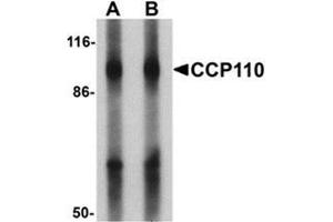 CCP110 is a centrosomal protein required for the centrosome to function as a microtubule organizing center and plays an essential role in centrosome duplication. It is a target of cyclin-dependent kinases (CDKs), disruption of CCP110 phosphorylation leads to unscheduled centrosome separation and polyploidy. CCP110 is also a target of SCF (Cyclin F) ubiquitin ligase complex, leading to its degradation, suggesting that this complex controls centrosome homeostasis and mitotic fidelity through CCP110 degradation. The centriolar kinesin Kif24 also interacts with CP110 and remodel microtubules and regulate ciliogenesis.Synonyms: CP110, Centrosomal protein of 110 kDa, KIAA0419