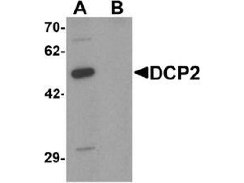 The removal, or decapping, of eukaryotic mRNA is an important step in the degradation of mRNA. Decapping protein 2 (DCP2) is the major mRNA decapping enzyme in cells. It is a member of the Nudix hydrolases superfamily of proteins that predominantly catalyze the hydrolysis of small nucleoside diphosphate substrates linked to another moiety. DCP2 is widely expressed in multiple tissues at varying levels, with highest expression seen in testis and brain.Synonyms: NUDT20, Nucleoside diphosphate-linked moiety X motif 20, Nudix motif 20, hDpc, mRNA-decapping enzyme 2