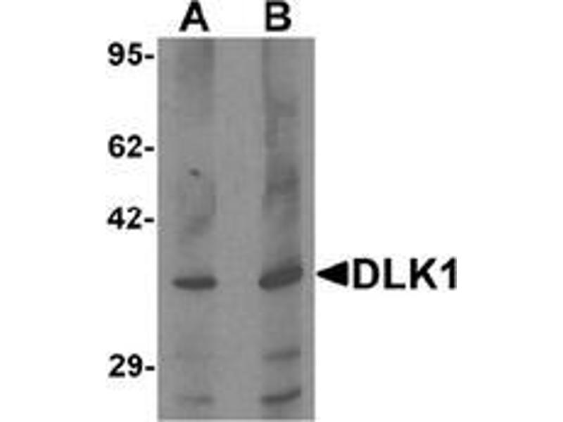 The Delta-like 1 homolog (DLK1) is a transmembrane protein containing six epidermal growth factor repeats. It is involved in the differentiation of several cell types, including adipocytes and is also thought to be a tumor suppressor. The DLK1 gene is one of several imprinted genes located in a region on chromosome 14q32, certain mutations in this imprinted region can cause phenotypes similar to maternal and paternal uniparental disomy of chromosome 14 (UPD14). DLK1 is expressed from the paternal allele, a polymorphism within this gene has been associated with child and adolescent obesity.Synonyms: DLK, DLK-1, PREF1, Preadipocyte factor 1, Protein delta homolog 1, pG2
