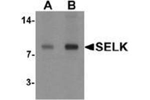SELK is a selenoprotein, containing a selenocysteine residue at its active site. SELK is localized to the endoplasmic reticulum and is highly expressed in the heart, where it may function as an antioxidant. SELK can bind to proteins such as the ER-associated degradation (ERAD) components p97 ATPase, Derlin-1 and -2, and SelS as well as proteins in the oligosaccharyltransferase complex, suggesting that SELK may be involved in the Derlin-dependent ERAD of glycosylated misfolded proteins. SELK is also thought to be important in Ca2+ flux in immune cells, and is cleaved by m-calpain in resting macrophages. When these macrophages are activated through different Toll-like receptors, this cleavage is inhibited