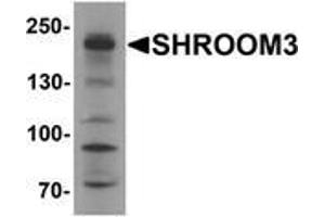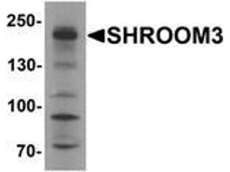 SHROOM family members play diverse roles in the development of the nervous system and other tissues. SHROOM3 is an actin-binding protein is a regulator of the microtubule cytoskeleton during epithelial morphogenesis and is sufficient and necessary to induce a redistribution of the microtubule regulator gamma-tubulin. It is necessary for both apiscobasal cell elongation and apical constriction in the neural epithelium (2,3) SHROOM3 has also been shown to be essential for cell shape changes and morphogenesis in the developing vertebrate gut, with its transcription relying on the Pitx1 transcription factor.Synonyms: APXL3, F-actin-binding, SHRM, SHROOM family member 3, ShrmL