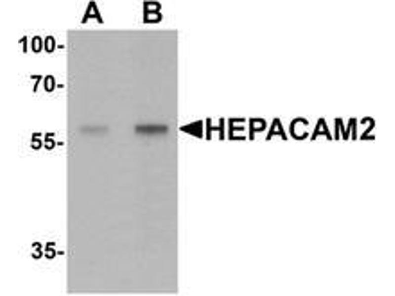 - Rabbit polyclonal HEPACAM2 antibody was raised against a 19 amino acid peptide near the carboxy terminus of human HEPACAM2.
