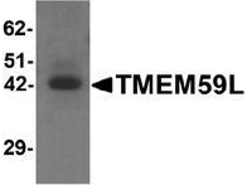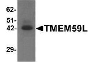 Processing of the amyloid precursor protein (APP) by two different proteases, called alpha- and beta-secretase, is a central regulatory event in the generation of the amyloid beta peptide (Abeta), which has a key role in Alzheimer disease (AD) pathogenesis. TMEM59L is a type I membrane glycoprotein that is expressed in the brain. A related protein, TMEM59, is a Golgi-localized protein that modulates the O-glycosylation and complex N-glycosylation steps occurring during the Golgi maturation of several proteins such as APP, BACE1, SEAP or PRNP and inhibits APP transport and shedding.Synonyms: BSMAP, Brain-specific membrane-anchored protein, C19orf4, Transmembrane protein 59-like