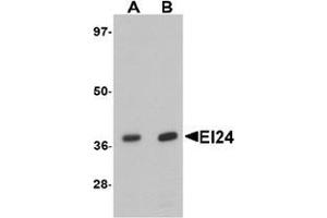 The etoposide-induced 24 (EI24) protein is an immediate-early induction target of p53-mediated apoptosis and functions as a tumor suppressor. EI24 contains six transmembrane domains and is localized to the endoplasmic reticulum (ER). It binds to Bcl-2 and may contribute to apoptosis by modulating the activity and function of Bcl-2. EI24 is highly mutated in aggressive breast cancers and its loss in breast cancer tissue correlates with tumor invasiveness. Similar findings in invasive cervical carcinoma suggest that EI24 may be a promising therapeutic target in the treatment of invasive cancer.Synonyms: Etoposide-induced protein 2.4 homolog, PIG8, p53-induced gene 8 protein