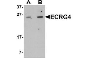 The esophageal cancer-related gene 4 (ECRG4), also known as Augurin, was identified through differential display screening between esophageal cancer and normal tissue. Hypermethylation of CpG sites in the ECRG4 promoter correlate with ECRG4 downregulation in numerous esophageal squamous cell carcinoma tissues.. In transfected cells, overexpression of ECRG4 induced G1 arrest, dephosphorylation of Rb and decreased expression of cyclins D1 and D3. Increased expression of ECRG4 in aged mouse brain is observed compared with young mouse brain. The increased ECRG4 level was accompanied by elevated senescence-associated acidic beta-galactosidase activity, suggesting that ECRG4 is involved in cellular differentiation and senescence.Synonyms: C2orf40, ECRG4