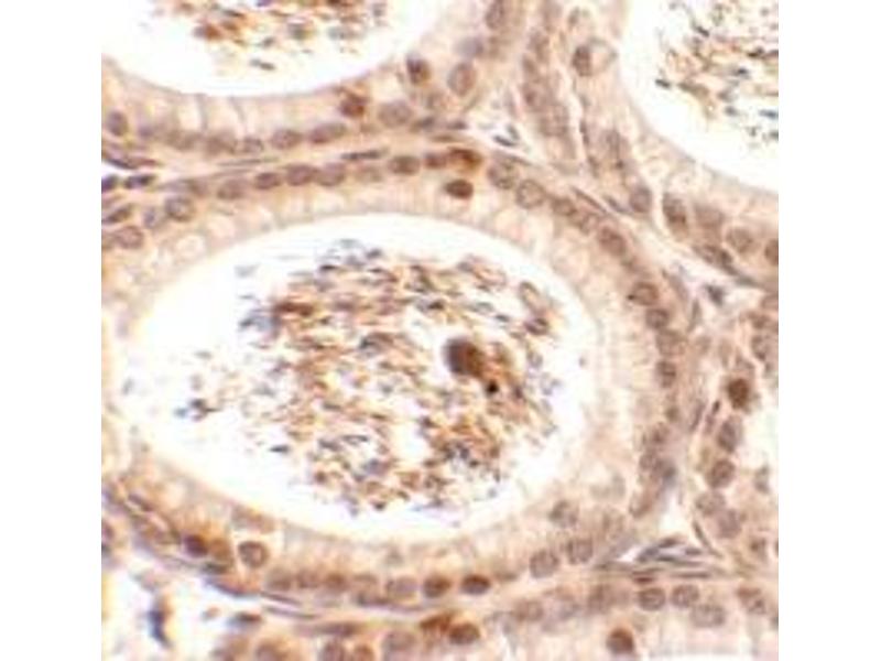 The Rabbit Polyclonal anti-SPATA3 antibody is suitable to detect SPATA3 in samples from Human and Mouse. It has been validated for WB, IF, IHC (p) and EIA.