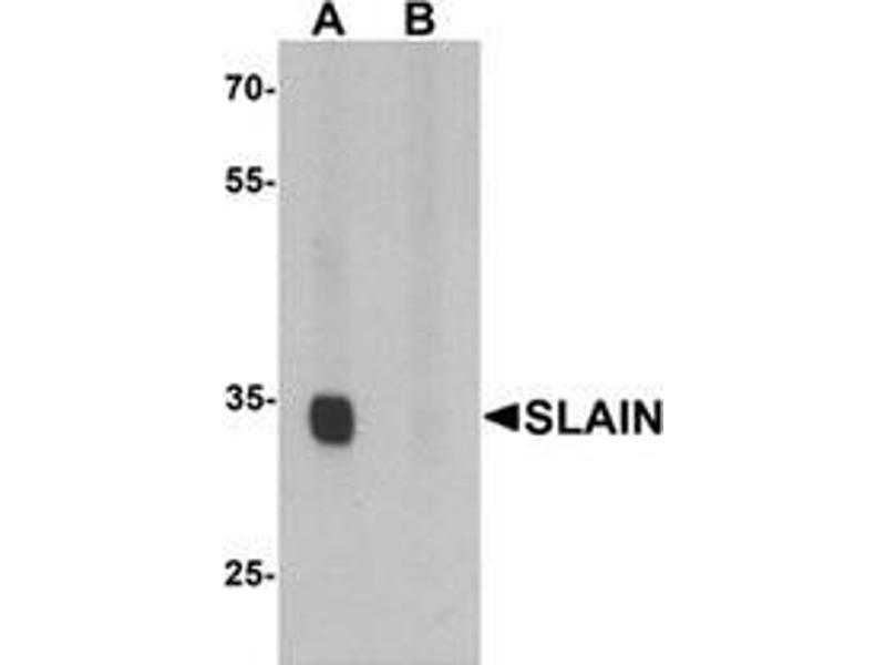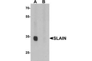 SLAIN1 is a novel stem cell protein that was identified by transciptional profiling of mouse and human embryonic stem cells (ESCs) and is expressed at the stem cell and epiblast stages. Unlike its more widely expressed homolog SLAIN2, SLAIN1 was found to be expressed in the epiblast, nervous system, tailbud and somites of the developing mouse embryo later experiments suggested that SLAIN1 may play a role in the development of the nervous system as well as in the morphogenesis of several embryonic structures.Synonyms: C13orf32, SLAIN motif-containing protein 1