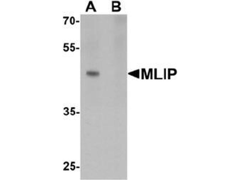 The Rabbit Polyclonal anti-MLIP antibody (ABIN1450122) specifically detects MLIP in WB, IHC (p), IF and EIA.