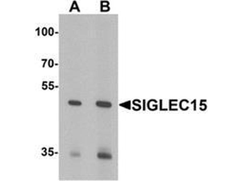 Siglecs are vertebrate cell-surface lectins that recognize sialylated glycans and are involved in many physiological processes, such as glycoprotein turnover, cellular trafficking, and pathogen recognition. Most Siglecs are expressed on cells of the immune system. SIGLEC15 is a type-I transmembrane protein consisting of two immunoglobulin (Ig)-like domains, a transmembrane domain containing a lysine residue, and a short cytoplasmic tail. SIGLEC15 can interact with the activating adaptor molecules DAP12/10. Its activating signaling potential and unique preference for glycan recognition implies that SIGLEC15 may be involved in the immune surveillance of tumors and probably plays a conserved, regulatory role in the immune system of vertebrates.Synonyms: CD33 antigen-like 3, SIGLEC-15, Sialic acid-binding Ig-like lectin 15