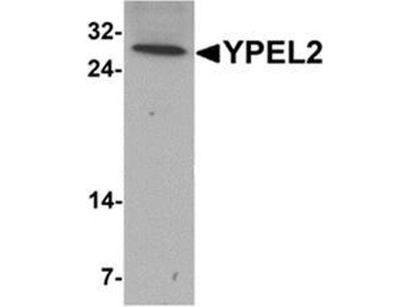 YPEL2 (yippee-like 2) belongs to a family of five yippee-like proteins, all of which localize to the centrosome or mitotic spindle and are widely expressed in both adult and fetal tissue. This localization plus the fact that the family of human YPEL proteins share a high degree of sequence homology across species suggests that these proteins may have a conserved function involved in cell division. YPEL2 might be an important factor during the development and malignant transformation of tissues, most notably pancreatic and breast tumors.Synonyms: FKSG4, Yippee-like 2