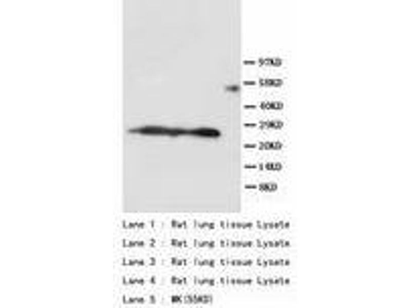 Synthetic peptide corresponding to a sequence at the C-terminal of Human SP-A (221-236 aa), different from the rat sequence by two amino acids.