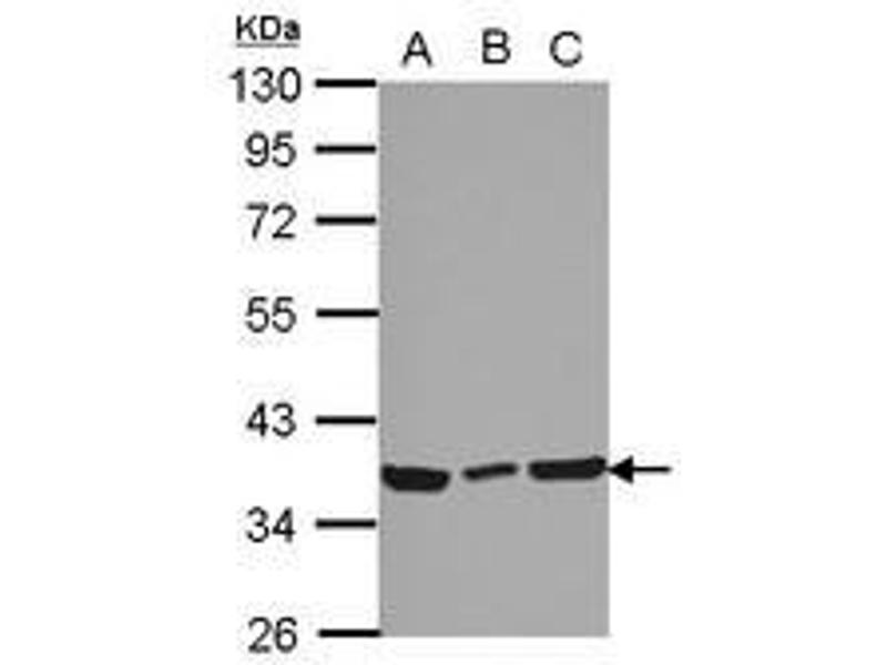 Usage: Suggested starting dilutions are as follows: Western blot: 1:1000-1:10000, IHC-Paraffin: 1:100-1:1000, ICC/IF: 1:100-1:1000. Not yet tested in other applications. Optimal working dilutions should be determined experimentally by the end user. -
