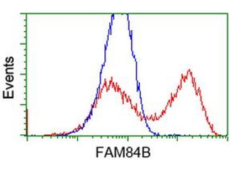 The Mouse Monoclonal anti-FAM84B antibody has been validated for WB, FACS and IF. It is suitable to detect FAM84B in samples from Human.