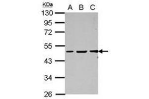 Usage: Suggested starting dilutions are as follows: Western blot: 1:500-1:3000. Not yet tested in other applications. Optimal working dilutions should be determined experimentally by the end user. -