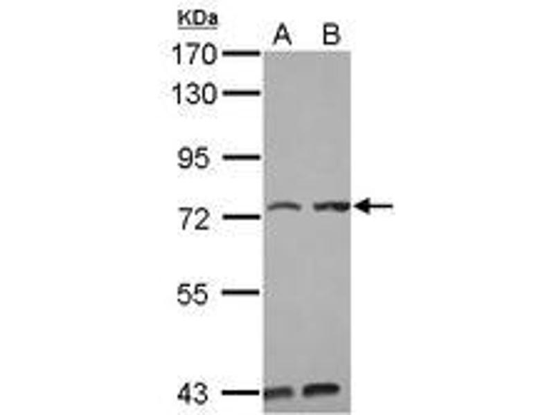 Usage: Suggested starting dilutions are as follows: Western blot: 1:500-1:3000, IHC-Paraffin: 1:100-1:1000 [suggested antigen retrieval using heat mediated 10 mM Citrate buffer ( pH 6.0) or Tris-EDTA buffer ( pH 8.0)]. Not yet tested in other applications. Optimal working dilutions should be determined experimentally by the end user. -