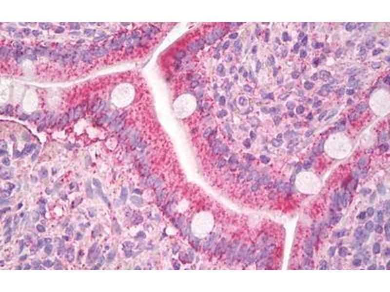 Usage: Immunohistochemistry: LS-B8198 in an IHC-plus antibody, validated by our pathologists for use in IHC against formalin-fixed, paraffin-embedded human tissues (IHC validation procedure). A concentration of 10 μg/mL is recommended. ELISA: In a sandwich ELISA (assuming 100 μL/well), a concentration of 1-2 μg/mL of this antibody will detect at least 100 pg/mL of recombinant human MCP-2 when used with biotinylated antigen affinity purified anti-human MCP-2 (LS-C104731) as the detection antibody at a concentration of approximately 0.5-1 μg/mL. Western Blot: To detect hMCP-2 by Western Blot analysis this antibody can be used at a concentration of 0.25-0.50 μg/mL. Used in conjunction with compatible secondary reagents the detection limit for recombinant hMCP-2 is 0.25-0.50 ng/lane, under non-reducing conditions. -