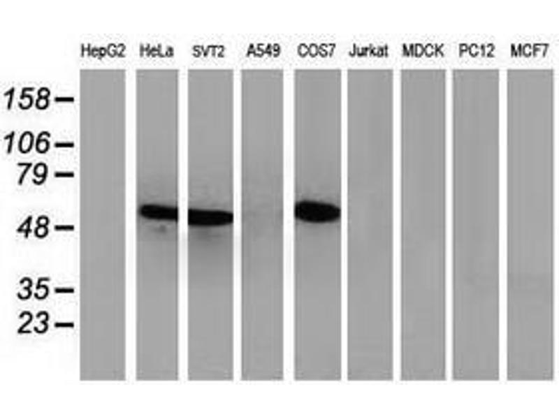 This anti-p53 antibody is a Mouse Monoclonal antibody detecting p53 in WB, IHC, IF, FACS and IHC (p). Suitable for Human, Mouse and Monkey. This Primary Antibody has been cited in 1 publication.