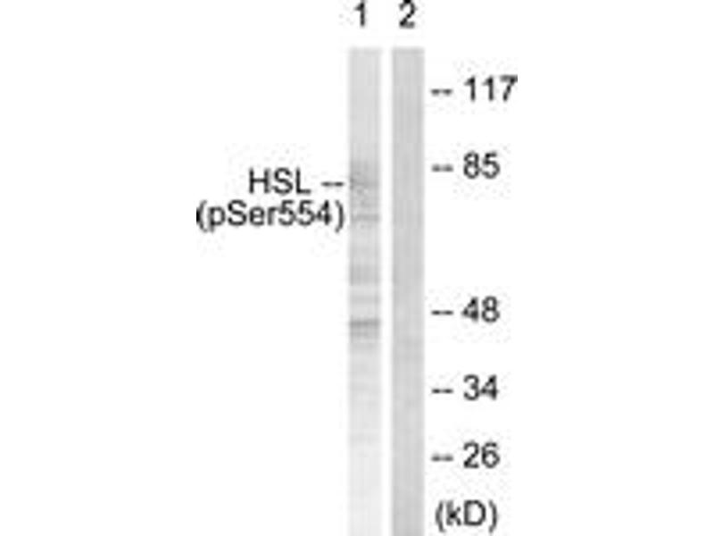 HSL (Phospho-Ser855/554) Antibody detects endogenous levels of HSL only when phosphorylated at Ser855/554.