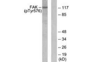 FAK (Phospho-Tyr576) Antibody detects endogenous levels of FAK only when phosphorylated at Tyr576.