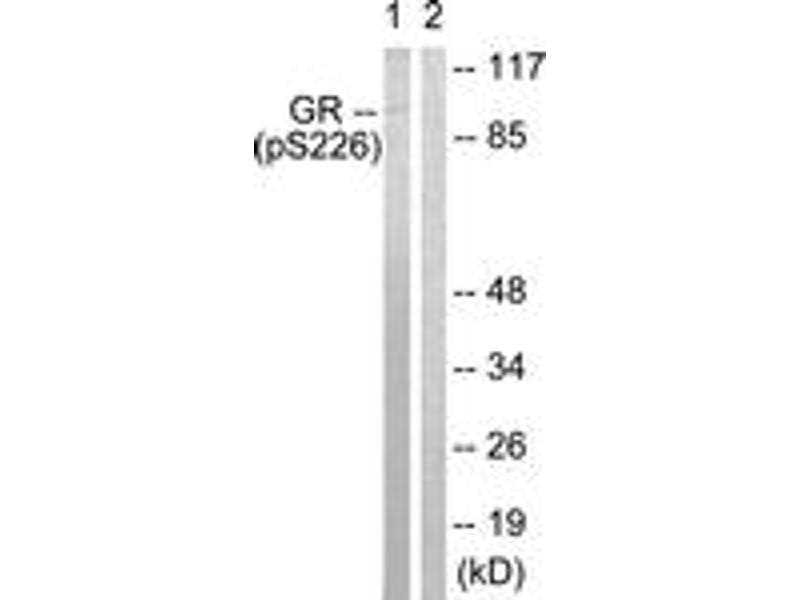 GR (Phospho-Ser226) Antibody detects endogenous levels of GR only when phosphorylated at Ser226.