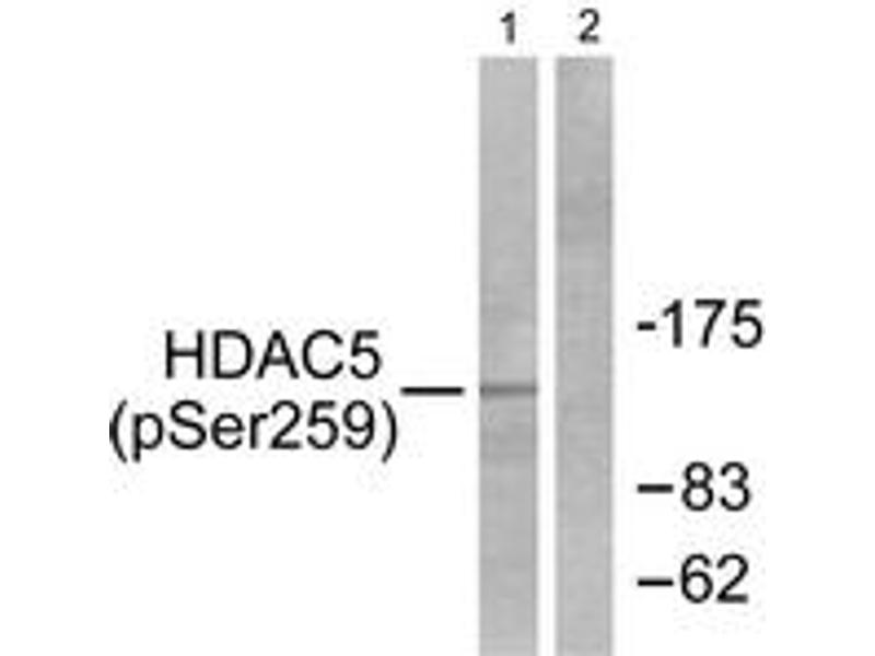 HDAC5 (Phospho-Ser259) Antibody detects endogenous levels of HDAC5 only when phosphorylated at Ser259.