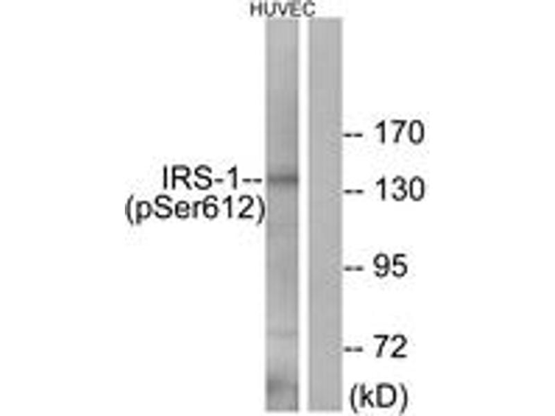 IRS-1 (Phospho-Ser612) Antibody detects endogenous levels of IRS-1 only when phosphorylated at Ser612.