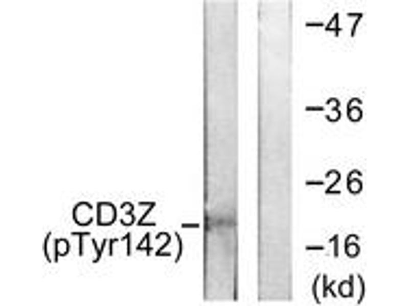 CD3 zeta (Phospho-Tyr142) Antibody detects endogenous levels of CD3 zeta only when phosphorylated at Tyr142.
