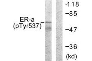 - The antiserum was produced against synthesized peptide derived from human Estrogen Receptor-alpha around the phosphorylation site of Tyr537.