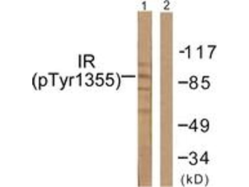 IR (Phospho-Tyr1355) Antibody detects endogenous levels of IR only when phosphorylated at Tyr1355.