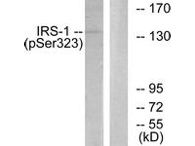 IRS-1 (Phospho-Ser323) Antibody detects endogenous levels of IRS-1 only when phosphorylated at Ser323.