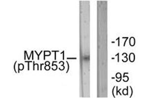 - The antiserum was produced against synthesized peptide derived from human MYPT1 around the phosphorylation site of Thr853.