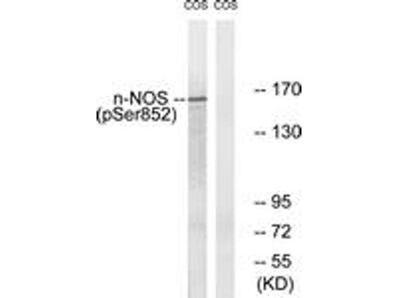 n-NOS (Phospho-Ser852) Antibody detects endogenous levels of n-NOS only when phosphorylated at Ser852.